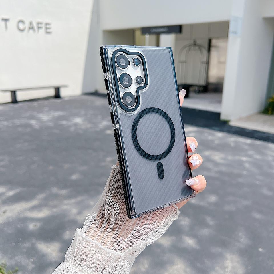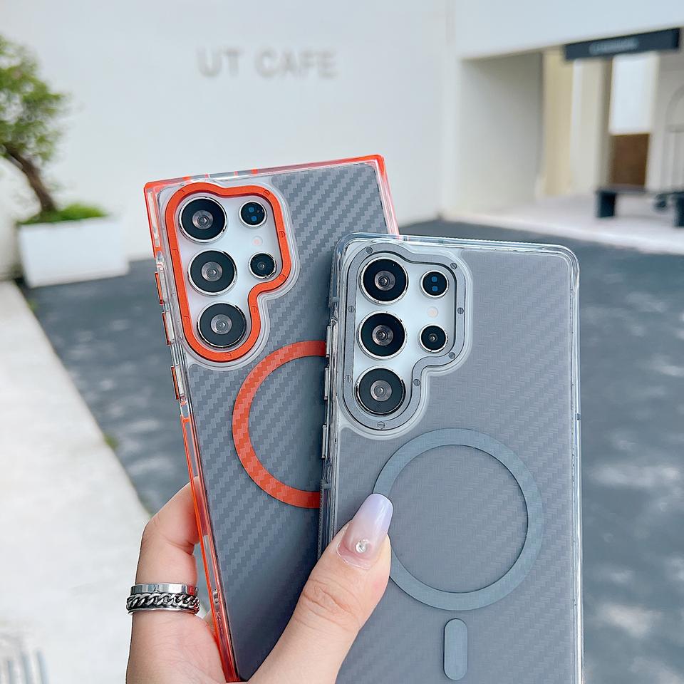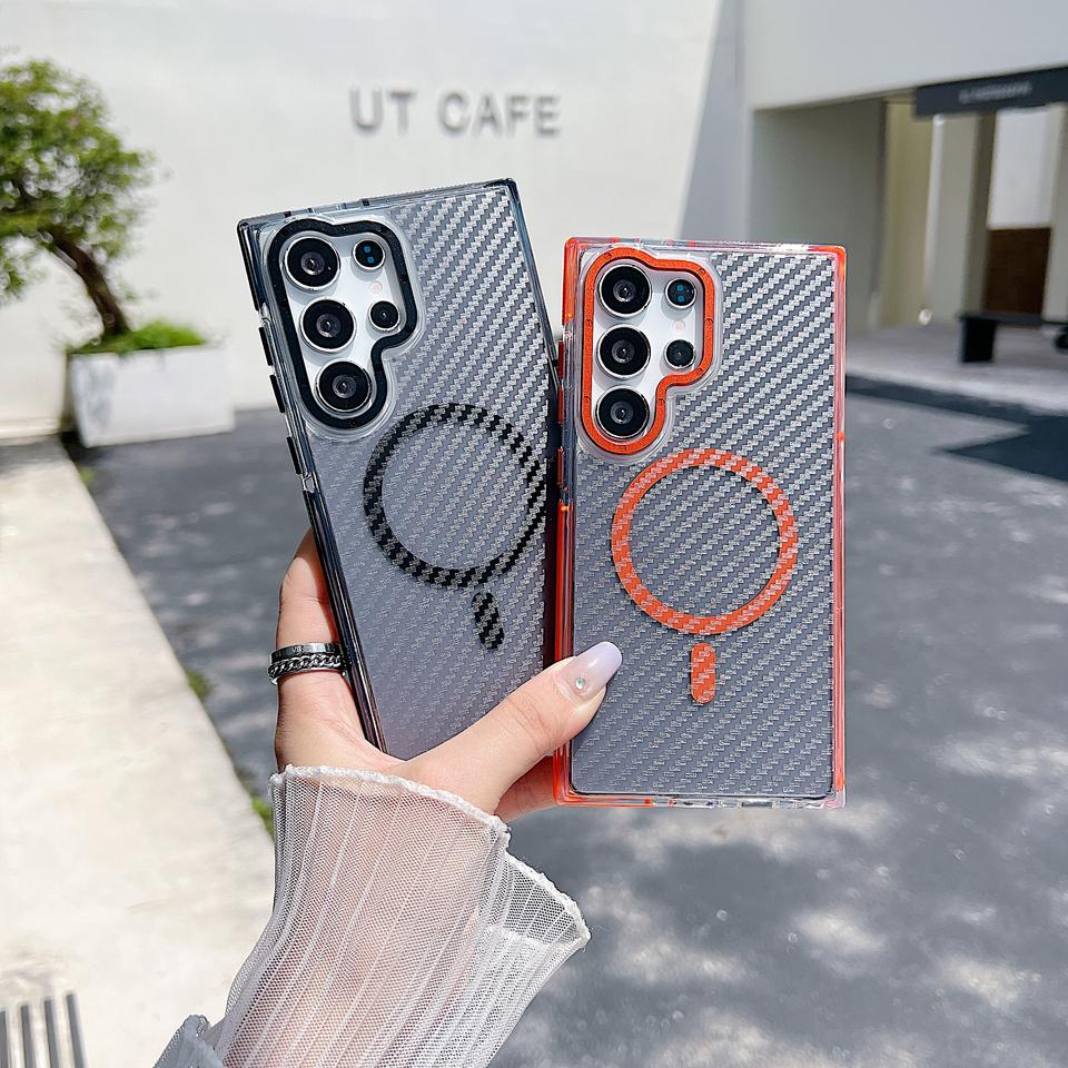 Funda Magnética para Teléfono Móvil con Patrón de Fibra de Carbono para Samsung S26 S25 S24 S23 S22 Ultra 25A 34 A35 A54 A55, Funda Antigolpes
