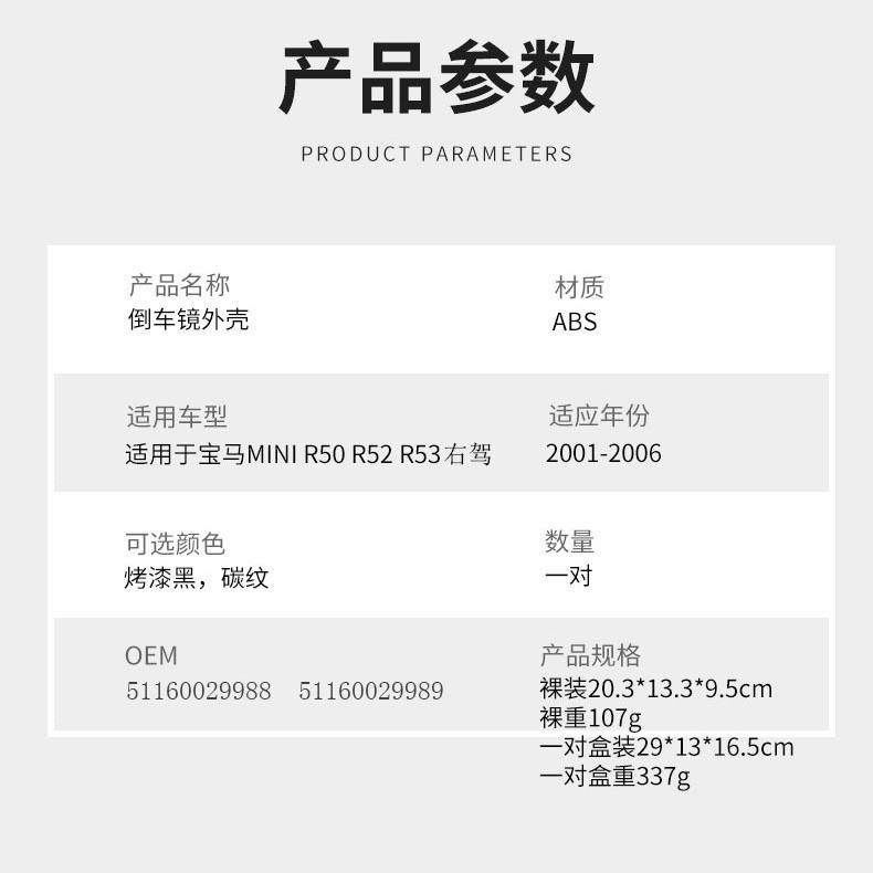Cubiertas de Espejos Retrovisores de Fibra de Carbono para Mini R50 R52 R53 2001-2006, Juego Completo, Material ABS