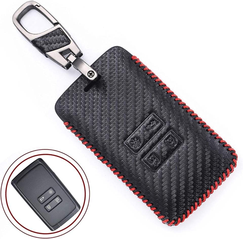 Funda de cuero para llave de coche estilo fibra de carbono para Renault Megane Koleos Kadjar Clio Captur para Dacia Logan Duster Cover Remote Fob