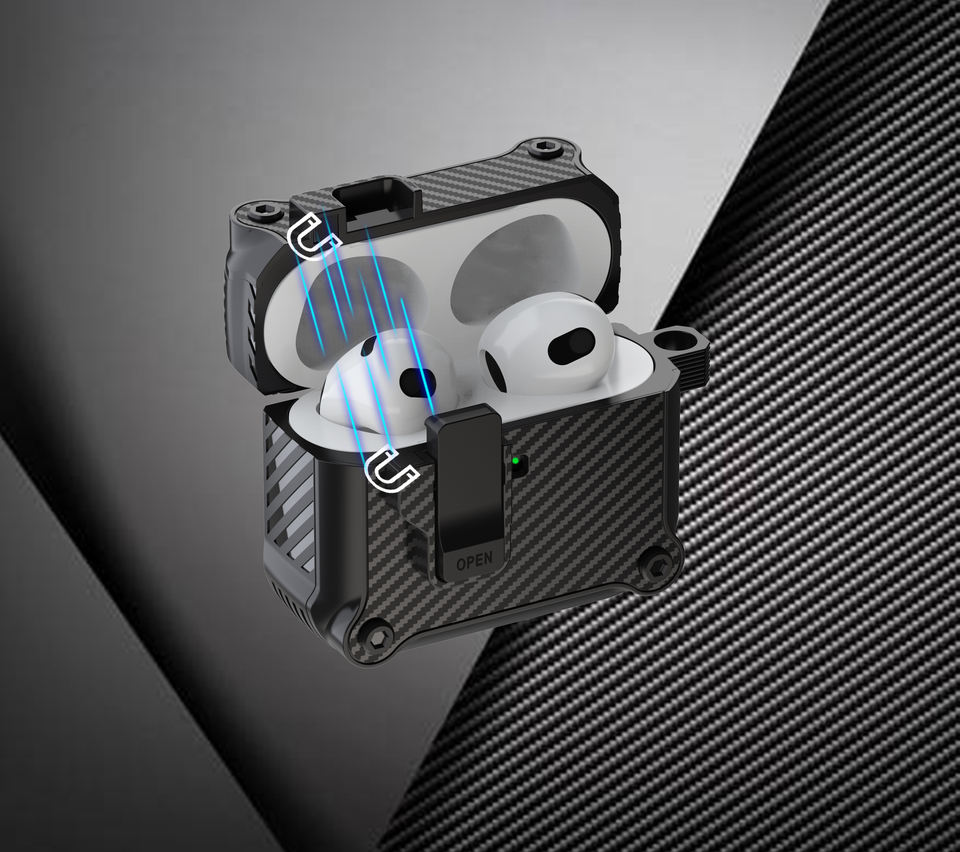 Funda de auriculares con bloqueo de interruptor de patrón de fibra de carbono para Samsung Buds 3 Pro airpods Pro 2 fundas de bloqueo funda de fibra de carbono para airpods