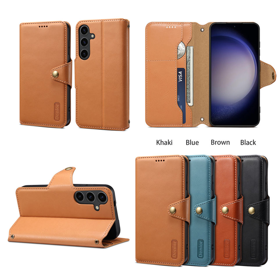 Portatarjetas Funda para teléfono móvil para Samsung Galaxy S24 Funda de cuero con tapa de lujo para negocios Negro Azul Naranja Marrón