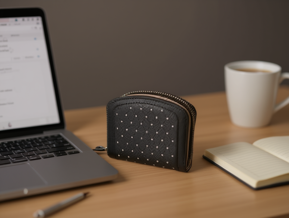 Cartera para tarjetas de crédito de 4 pulgadas, de cuero PU, con cierre de cremallera, estilo minimalista