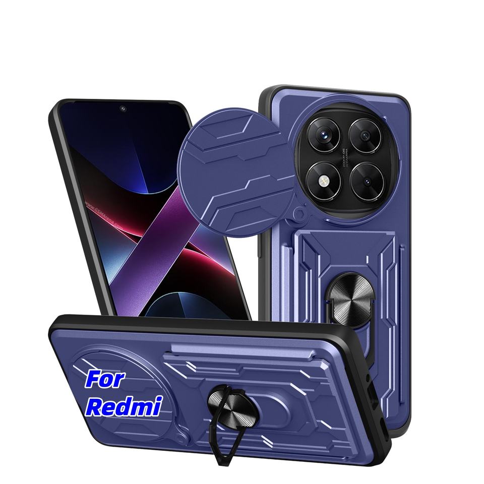 Funda para Teléfono Móvil con Ranura para Tarjetas para Xiaomi Redmi Note 14 Pro Plus 15 15C 14C A5 A3, Anillo, Soporte, Protección de Cámara, Antigolpes