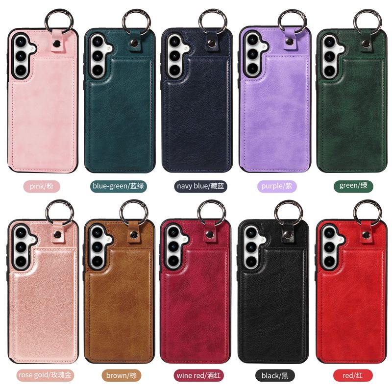 Funda de Cuero con Ranuras para Tarjetas y Anillo para Samsung Galaxy S25 S24 S23 Ultra S22 Plus S21 FE A12 4G A13 5G A14 A52 A72