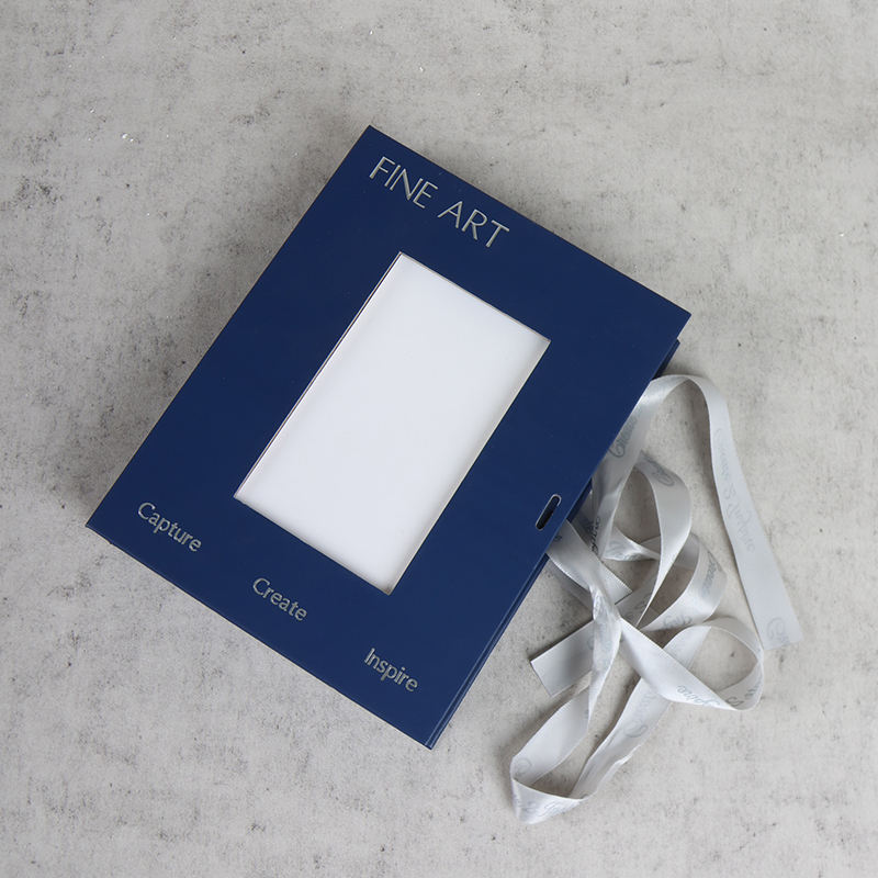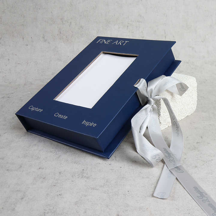 Caja de Regalo de Cartón Ecológica de Alta Gama con Laminado Mate, Forro de Esponja, Impresión Azul, Cierre Magnético y Lazo para Regalos Vacíos