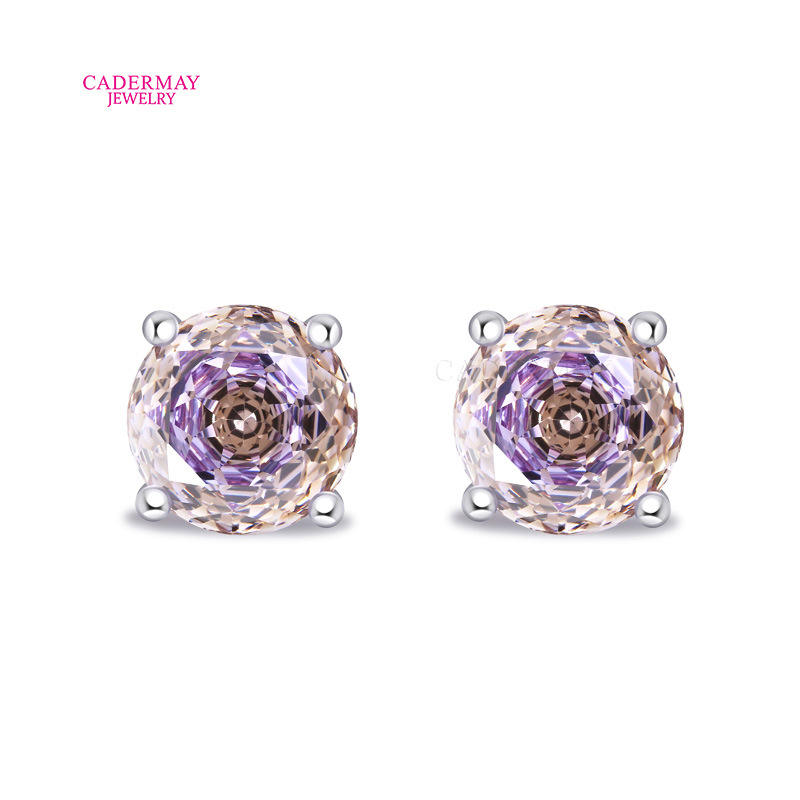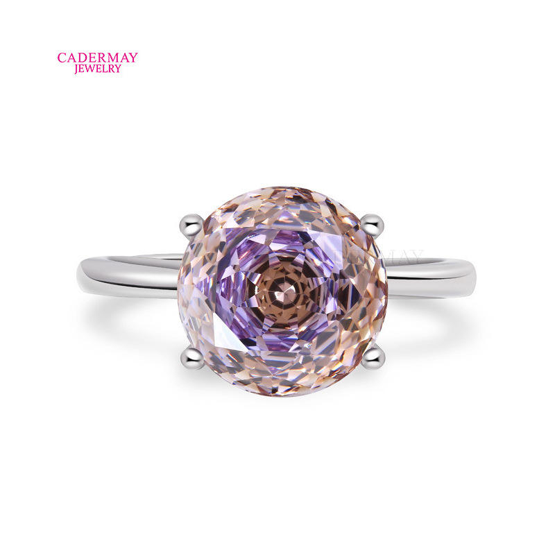 Cardermay Flower Shape Zircon Jewelry Set 925 Silver Pendant Necklace Ring Earrings Light Purple Everyday Wear