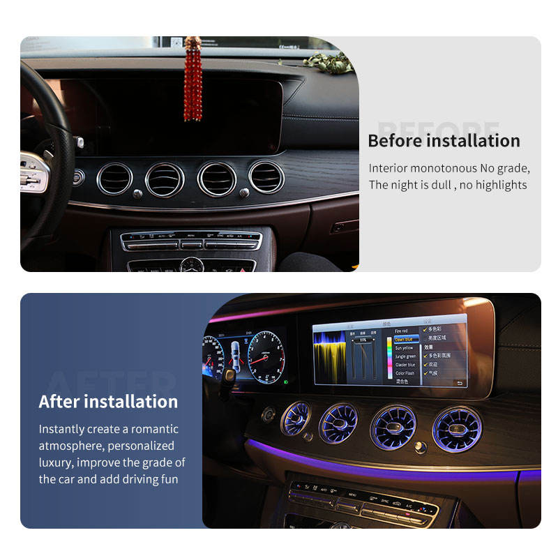Sistema de Iluminación Interior Cardi Air Outlet para Mercedes-Benz Clase E W213, Tiras LED con 64 Colores, Control por Aplicación, Fácil Instalación