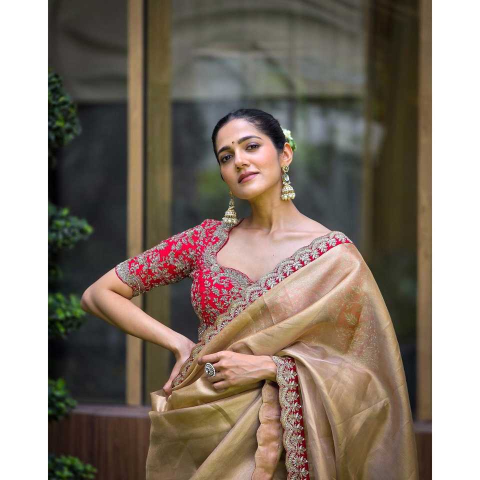 Vestidos de carrera Ropa de fiesta Saree con Secuencia y cordones Trabajo de bordado