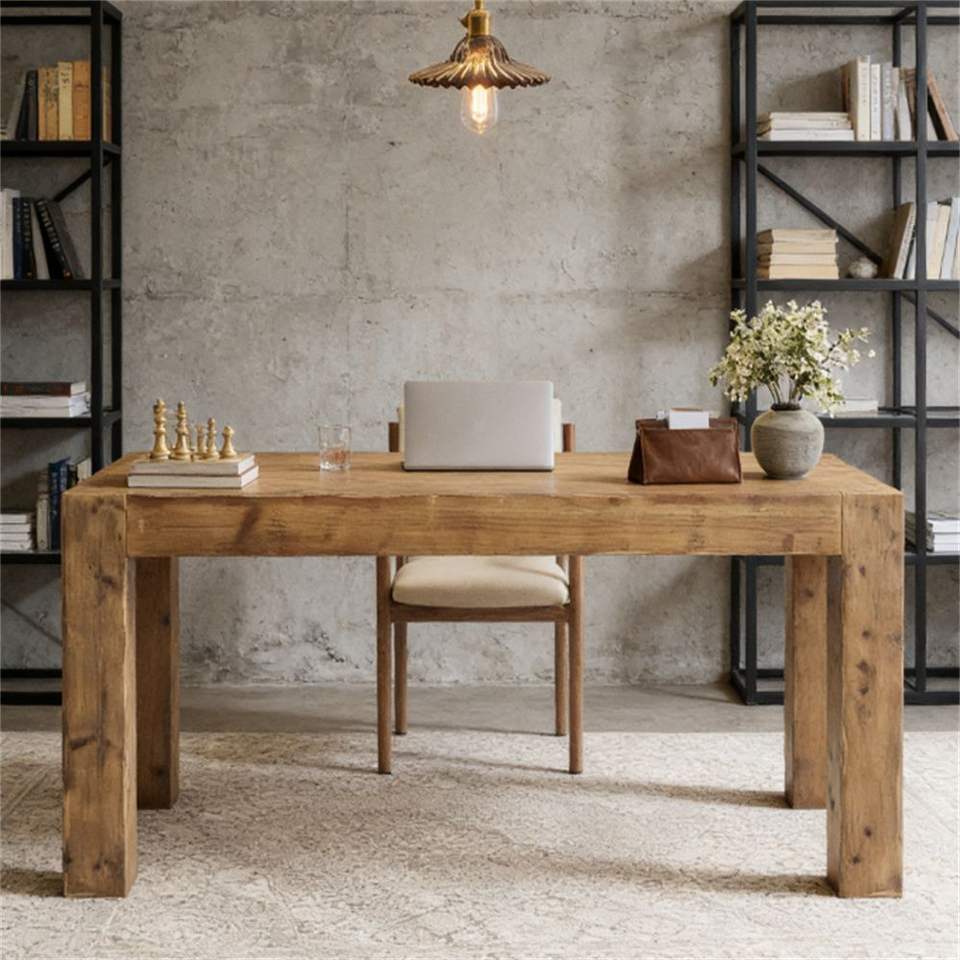 Escritorio de Estudio Rectangular de Diseño Cuidadosamente Elaborado, Escritorio Administrativo y para Computadora de Madera Sólida