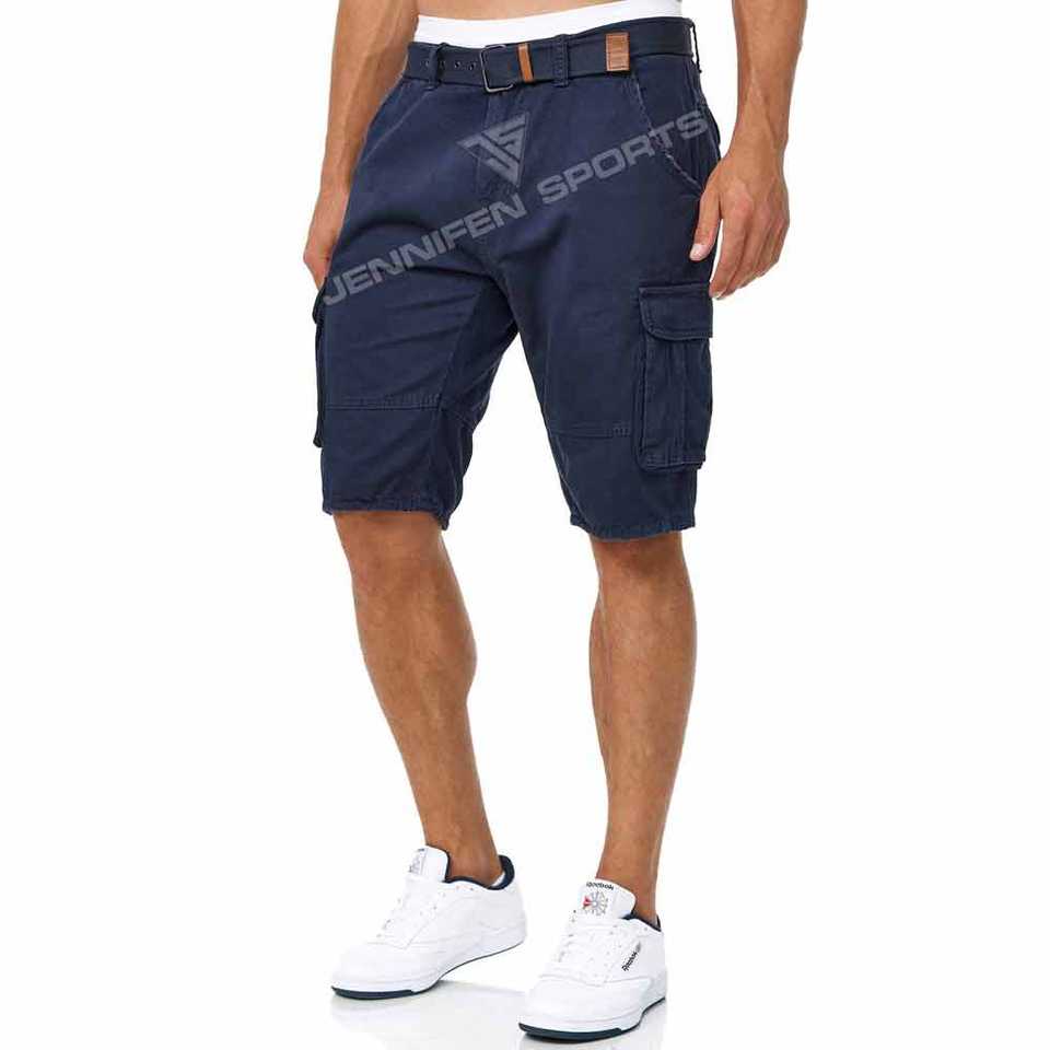 Material corto para hombre Cargo 100% tela de algodón, lados inferiores, bolsillos traseros con bucles para cinturón cremallera y cierre de botones, Etiqueta interior