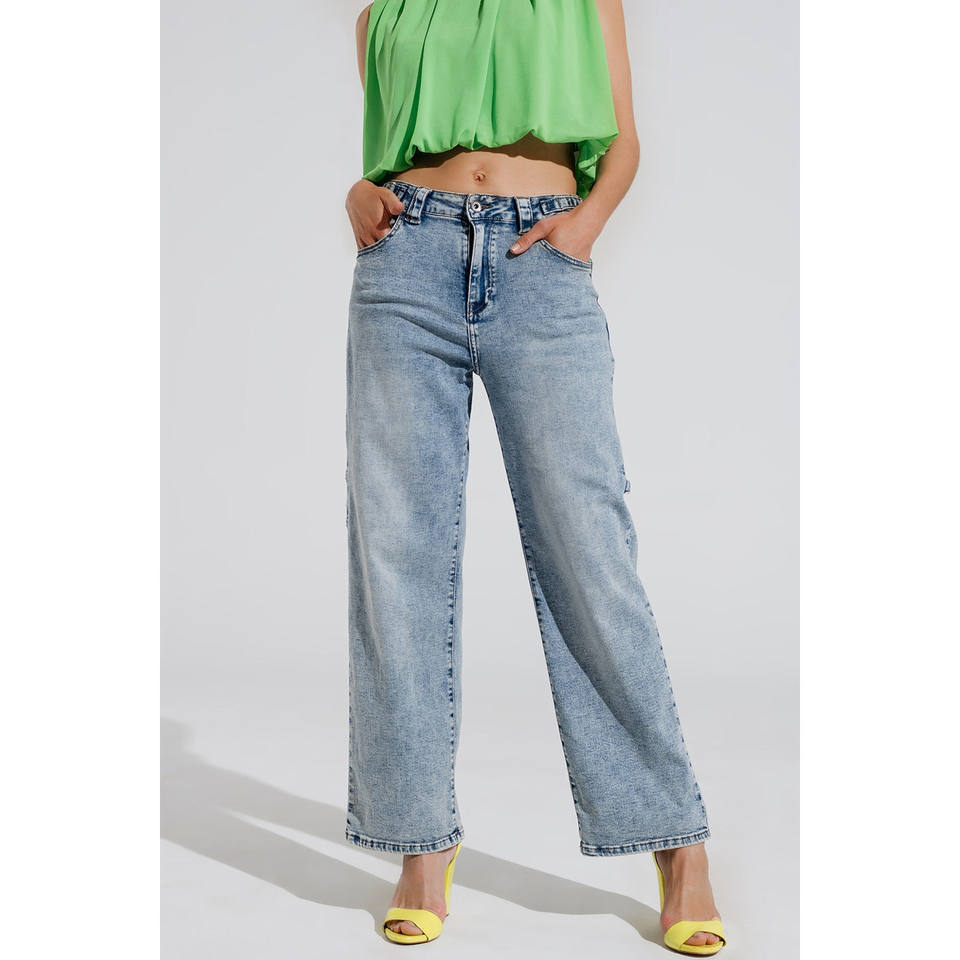 Jeans estilo cargo blanqueados con detalles de correa tipo cinturón en la cintura