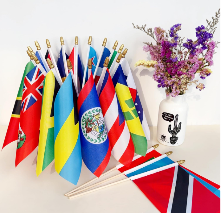 Caribe 20 Países Stick Flags Pequeñas Mini Banderas de mano 5x8 pulgadas