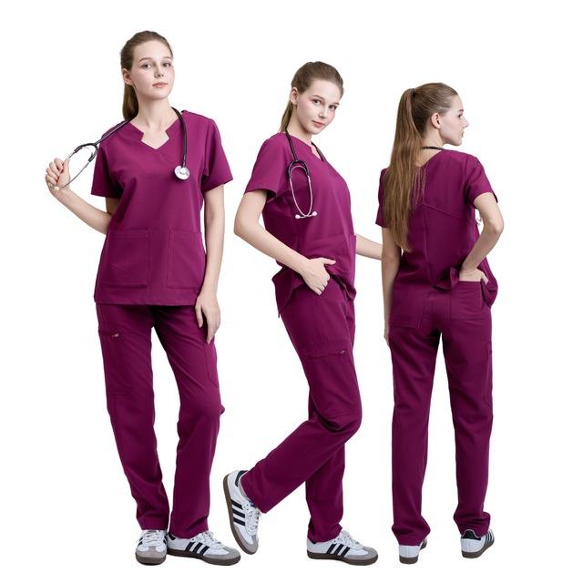 Conjunto de uniforme de enfermería azul caribeño con cremallera frontal completa vendedores de tela de punto uniformes de Hospital