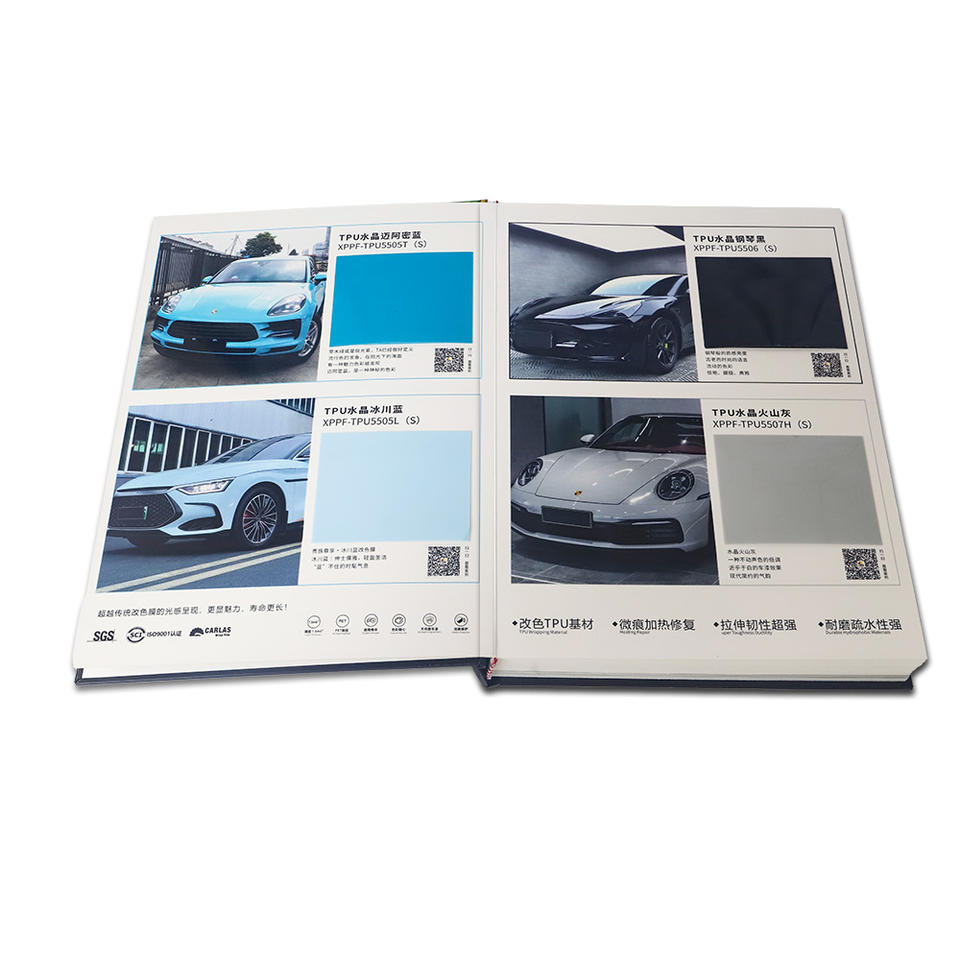 Nuevo Catálogo de Productos de Película de TPU que Cambia de Color de Carlas, Catálogo de Productos de Embalaje Automotriz y Libro de Muestras de Vinilo Automotriz