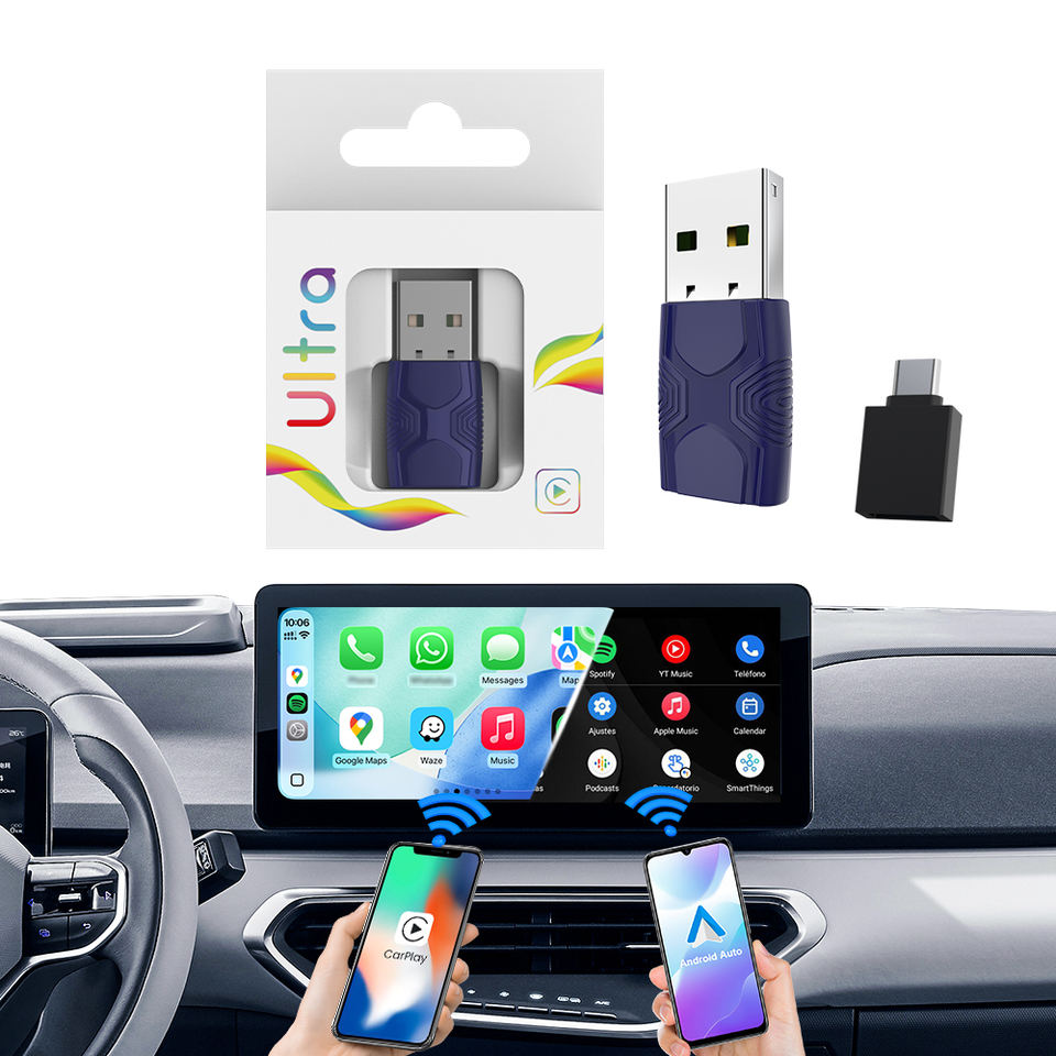 Kit Carlink Mini Ultra 2 Ai Box, Adaptador Inalámbrico Car Play, Dongle Carplay con Transmisión, USB, USB-C, Android Auto 2 en 1, Caja Inteligente