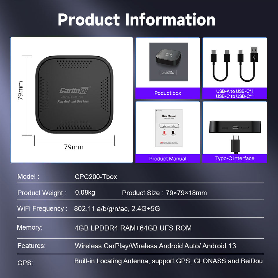 Carlinkit Wireless CarPlay AI Box EE. UU. Canadá 4G LTE Android 13 Car Smart Adapter Dongle Mini 8 Core 4GB + 64GB Tarjeta Sim