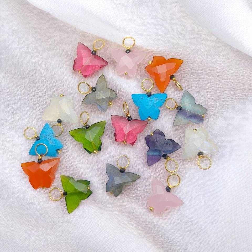 Nombre del Producto:Amuleto tallado de mariposa con piedras preciosas hechas a mano de 10x12 mm