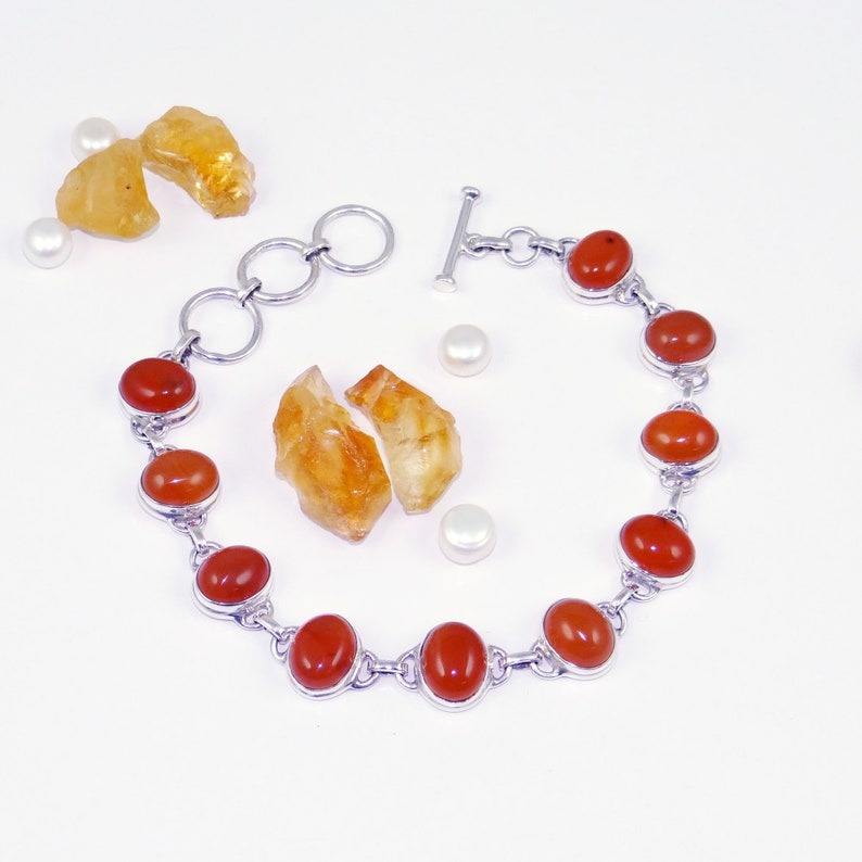 Pulsera de Tenis de Plata de Ley 925 con Baño de Rodio y Piedra de Cornalina, Diseño Hermoso, Joyería Fina Hecha a Mano