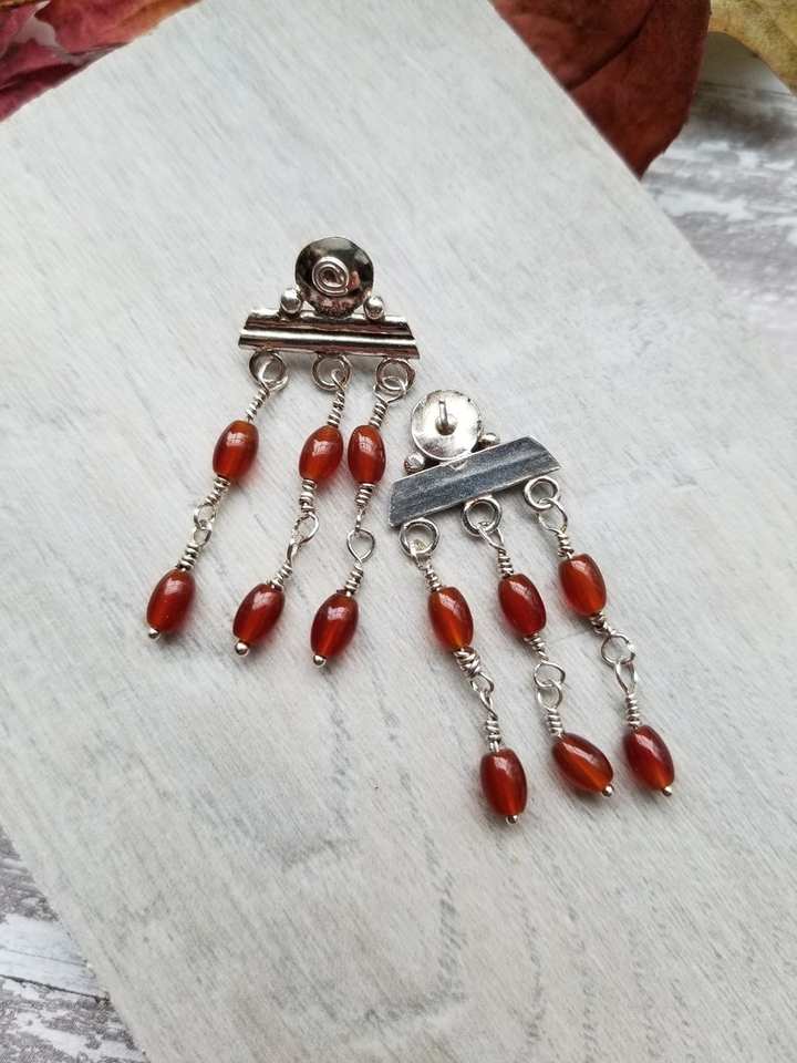 Pendientes colgantes de plata de ley cornalina hechos a mano Diseño de barra de Luna antiguo inspirado en Roma joyería de moda para fiesta para mujer