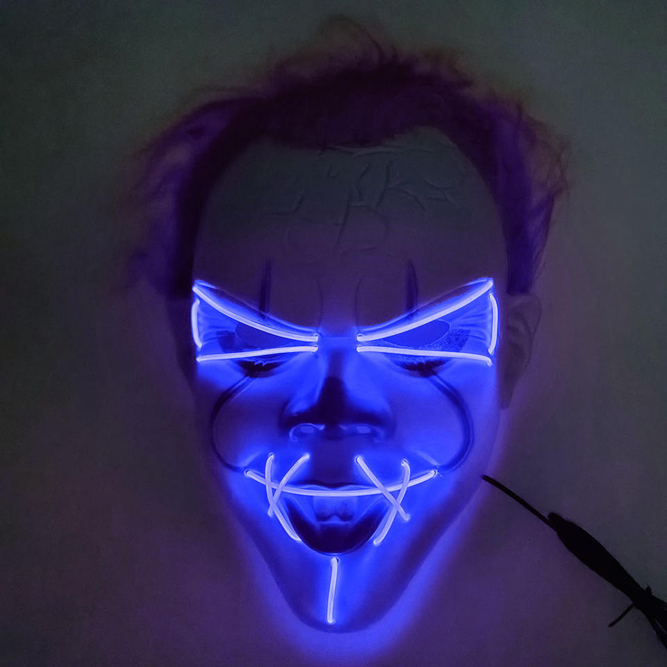 Carnaval Payaso Volver al alma Cosplay Máscara Resplandor Mascarada Fiesta Horror Prop Luz fría Navidad Boda Máscara de metal Accesorios impresos