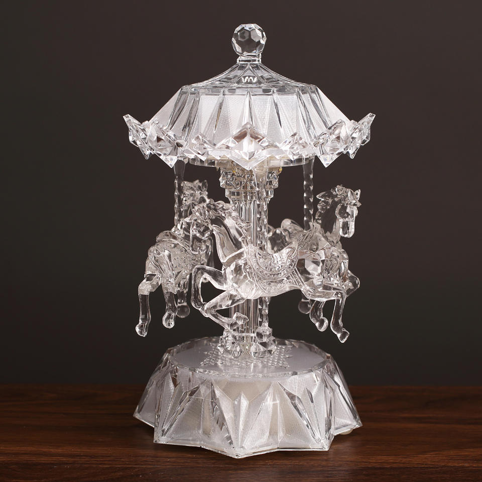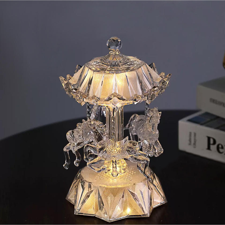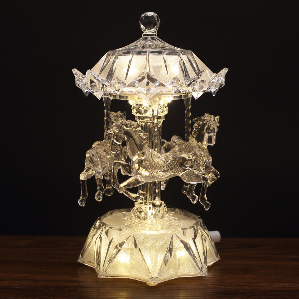 Caja de música con diseño de carrusel, luz nocturna, adorno giratorio acrílico para niñas, regalo de cumpleaños, decoración del Festival Qixi