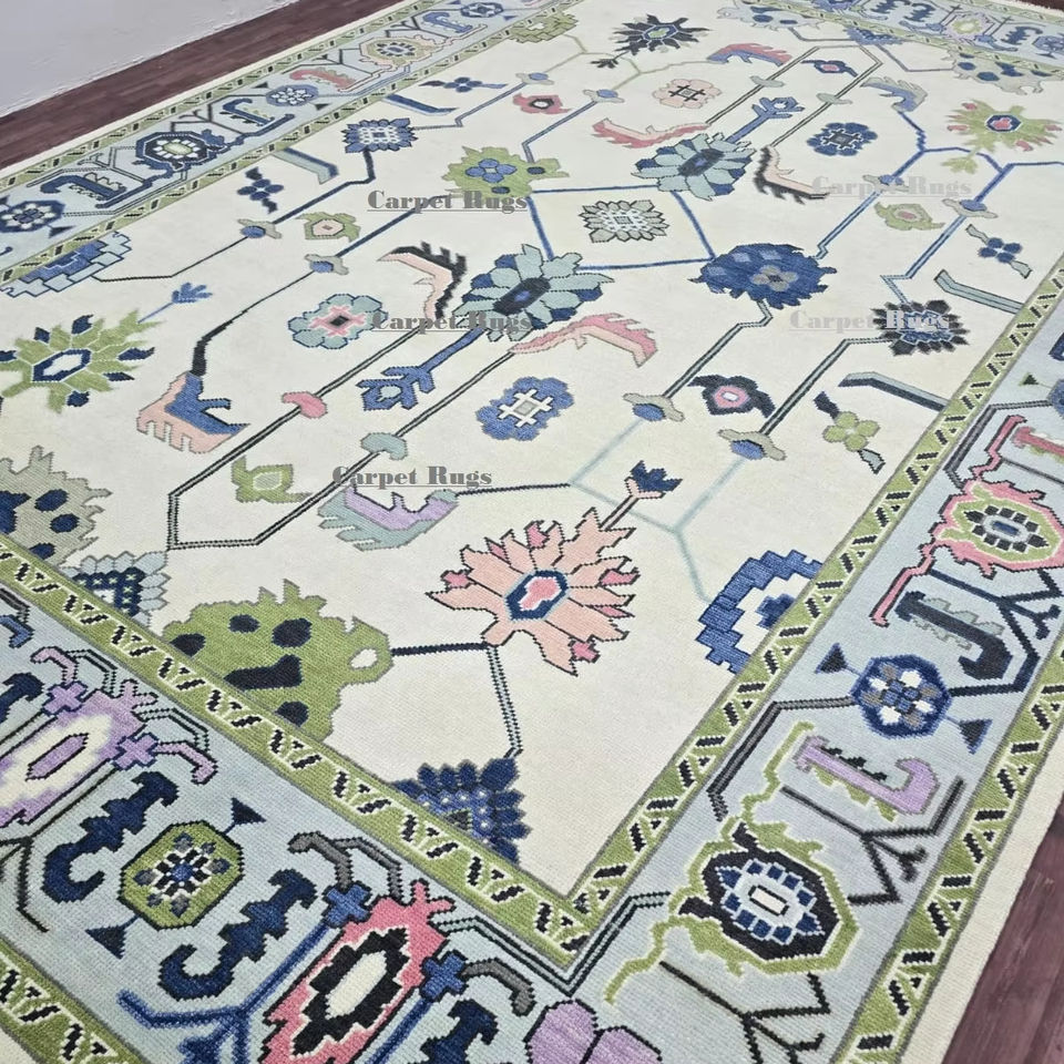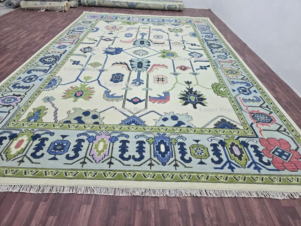 Beige Blue 9x13 Beautiful Turkish:Beige Blue 9x13 Beautiful Turkish Oushak Handmade Wool Rug