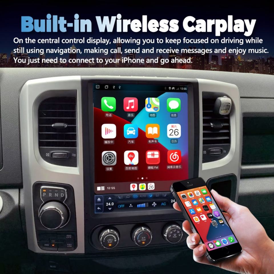 Estéreo Multimedia Carplay Android 13 Tesla para Dodge RAM 1500 2500 2008 2009 2010 2011 2012 2013 2014-2019, Unidad Principal de Radio y Audio