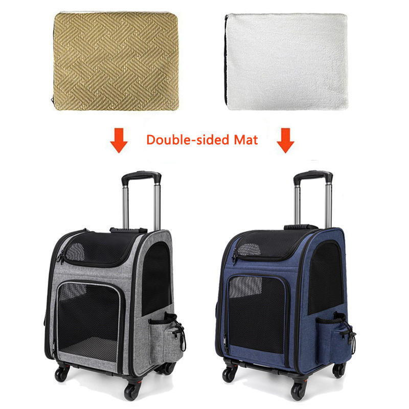 Mochila transportadora con ruedas, mochila transportadora extraíble para mascotas, mochila transpirable de viaje para mascotas, compatible con hasta 15 libras para gatos y cachorros