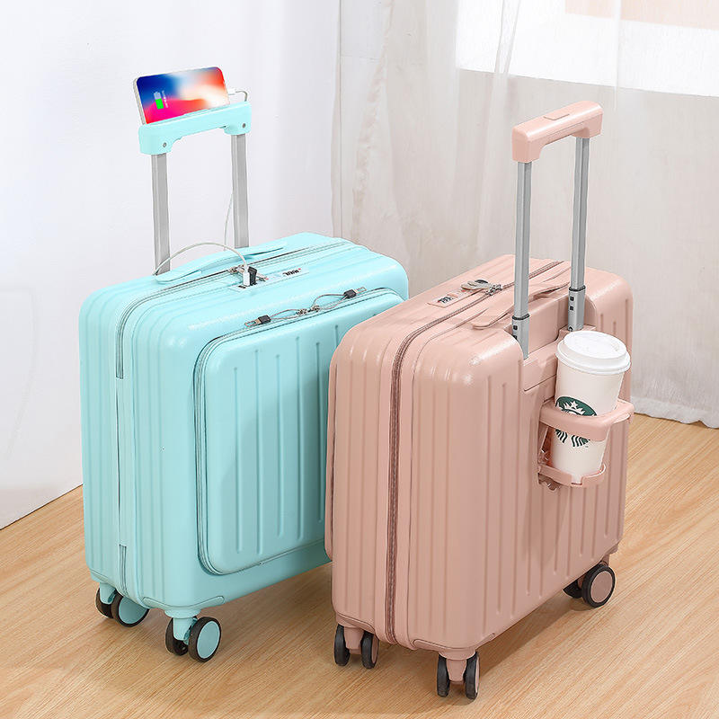 Maleta de mano con ruedas de 18 pulgadas, con cerradura, multifuncional para viajes, unisex, color sólido, apertura con cremallera