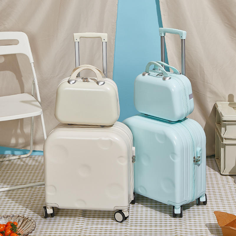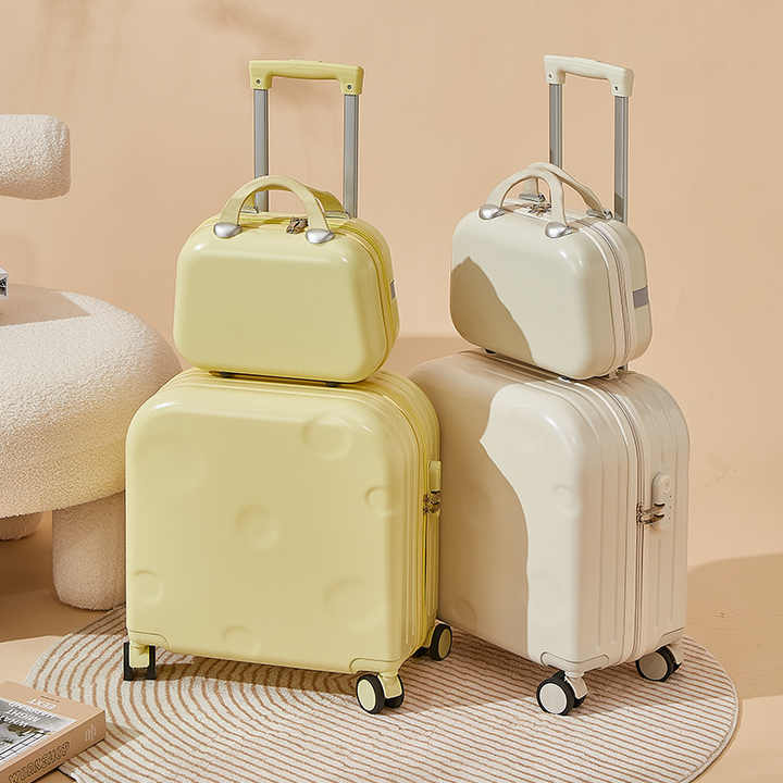 Maleta de Maquillaje de ABS Color Caramelo de 18 Pulgadas con Cierre de Cremallera, Maleta de Viaje con Ruedas para Cosméticos
