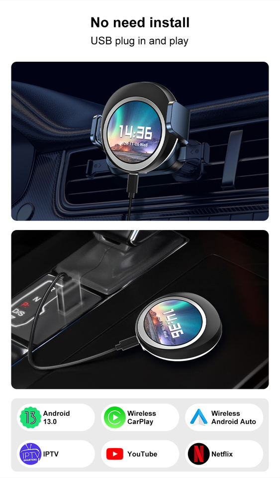 Nombre del producto:Apple Carplay inalámbrico Android Auto