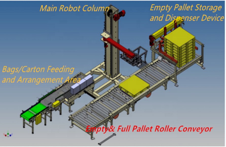 Paquetes de cartón Paletizador de una sola columna, Paquete Cass Paletizador Máquina, Proveedor de paletizador automático de baja velocidad