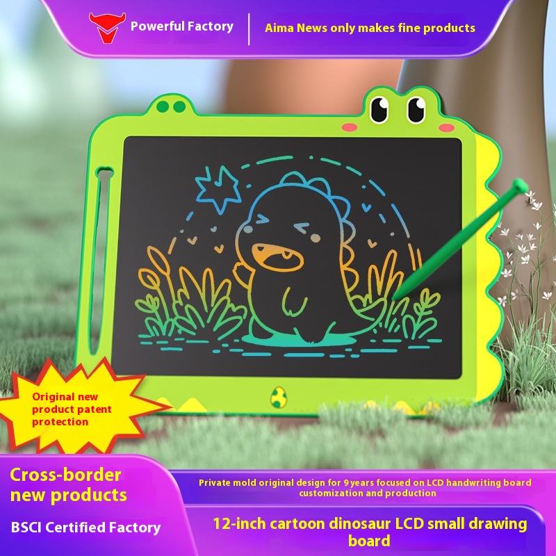 Tablero de escritura a mano a Color LCD con forma de dinosaurio de 12 pulgadas de dibujos animados, almohadillas de escritura Digital educativas para niños para pintura de grafiti