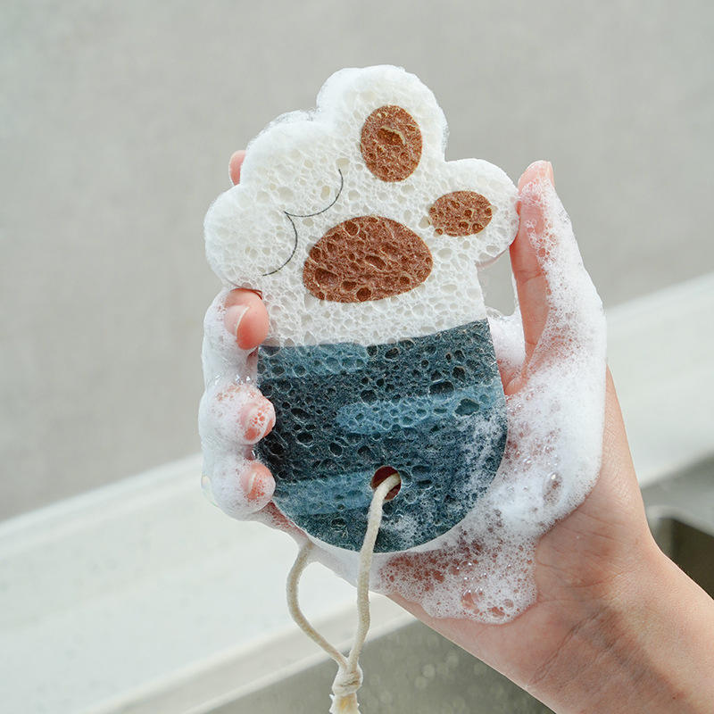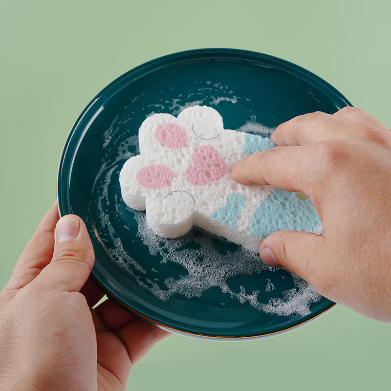 Esponja de pulpa de madera comprimida con forma de animal de dibujos animados, altamente absorbente, para limpiar ollas y sartenes.