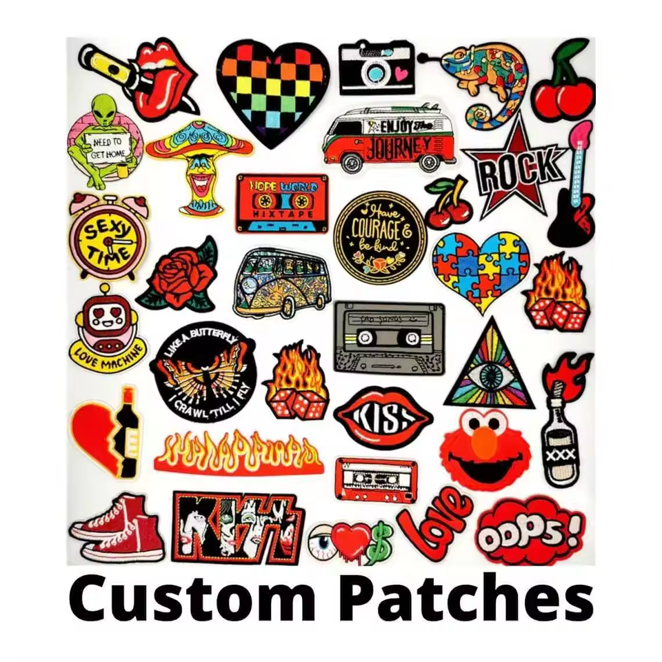 Parches Bordados Lisos de Dibujos Animados, Anime, Cohete Arcoíris, Flor Rosa - Parches Termoadhesivos y para Coser para Reparar Agujeros