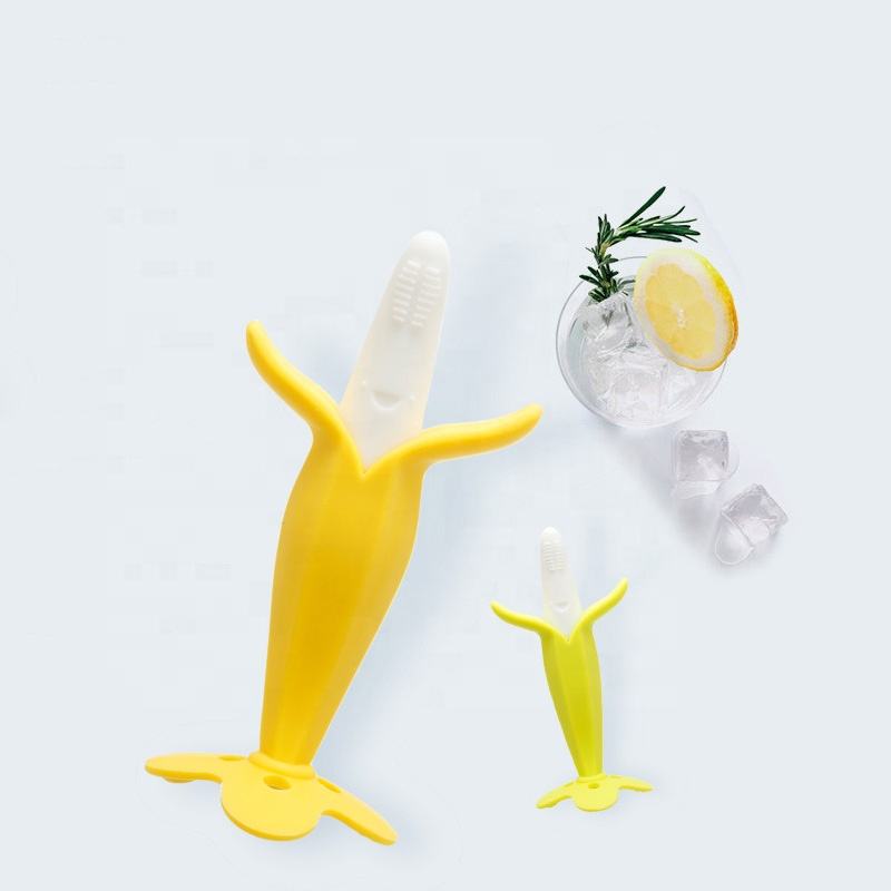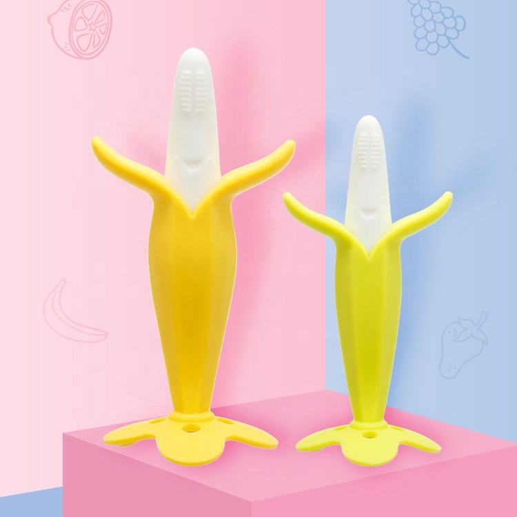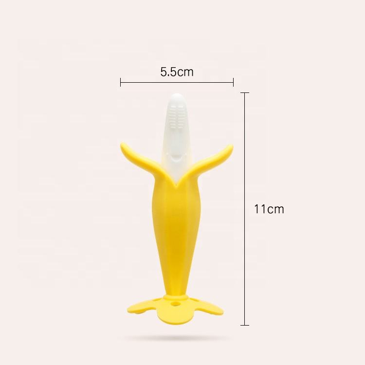 Mordedor de cepillo de dientes de bebé con forma de plátano de dibujos animados, juguete sensorial de dentición suave, mordedor de silicona masticable para bebé de grado alimenticio