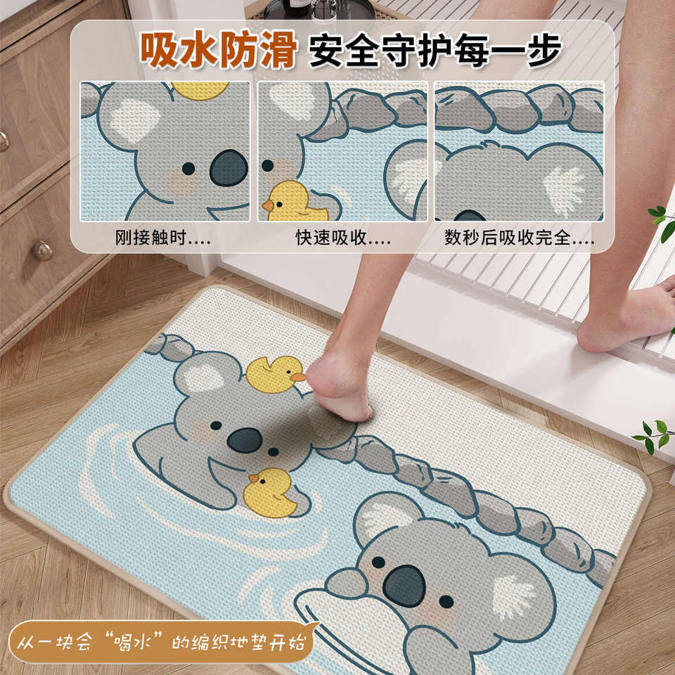 Alfombra de baño de dibujos animados, imitación de lino, rectangular, antideslizante, absorbente, de secado rápido, para la entrada del baño