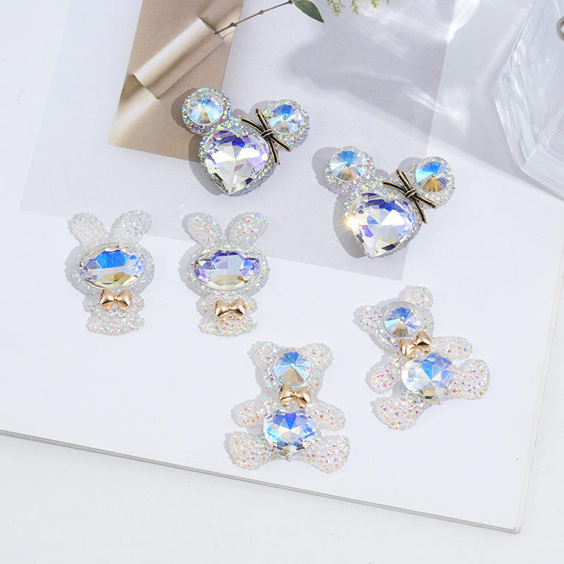 Accesorios de Cristal de Resina con Cabeza de Oso, Conejo y Mickey Mouse, Decoraciones Infantiles para Lazos y Horquillas para el Cabello