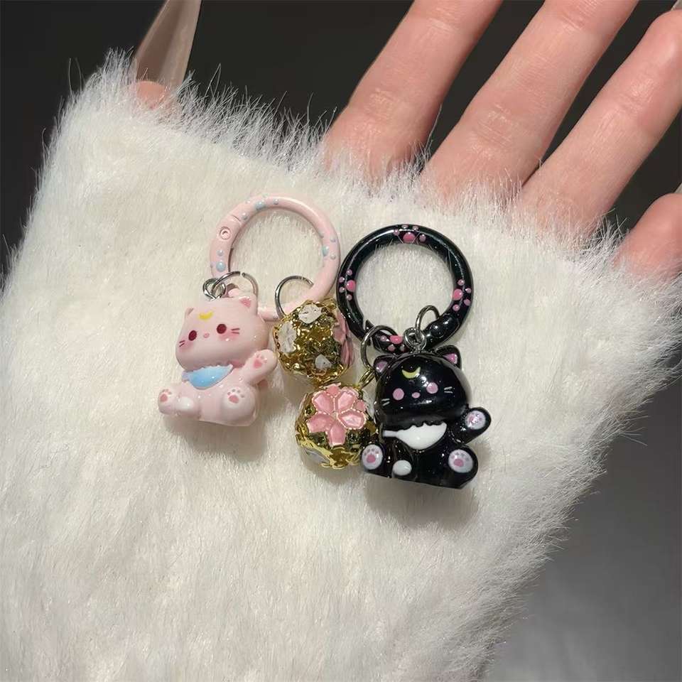 Nombre del producto:Llavero de Gato de Dibujos Animados, Adorable Llavero con Campanita de Gato, Accesorios para Bolso de Niña.