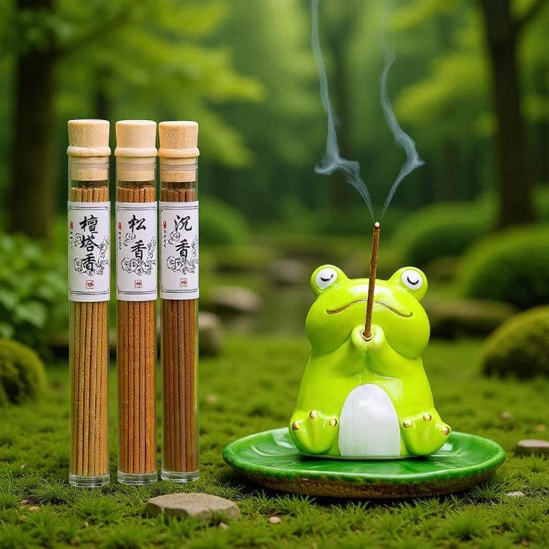 Porta Incienso de Cerámica con Diseño de Rana, con Varillas de Sándalo Natural Aromático, para Decoración del Hogar y Estudio