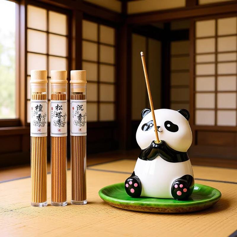 Porta Incienso de Cerámica con Diseño de Panda (Estilo Dibujos Animados)