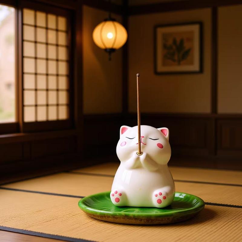 Porta incienso de cerámica con diseño de gatito (estilo caricatura)