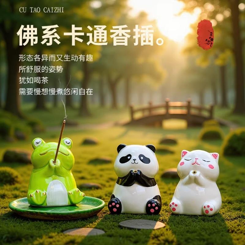 Cartoon ceramic incense holders [Panda], [Kitten], [Frog]