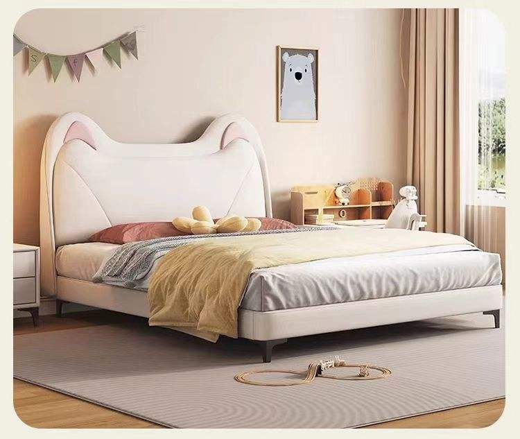 Cama Infantil de Dibujos Animados para Niñas, Diseño de Orejas de Gato de Princesa, Minimalista, Moderna, Estructura de Madera Maciza, Muebles de Dormitorio con Almacenamiento