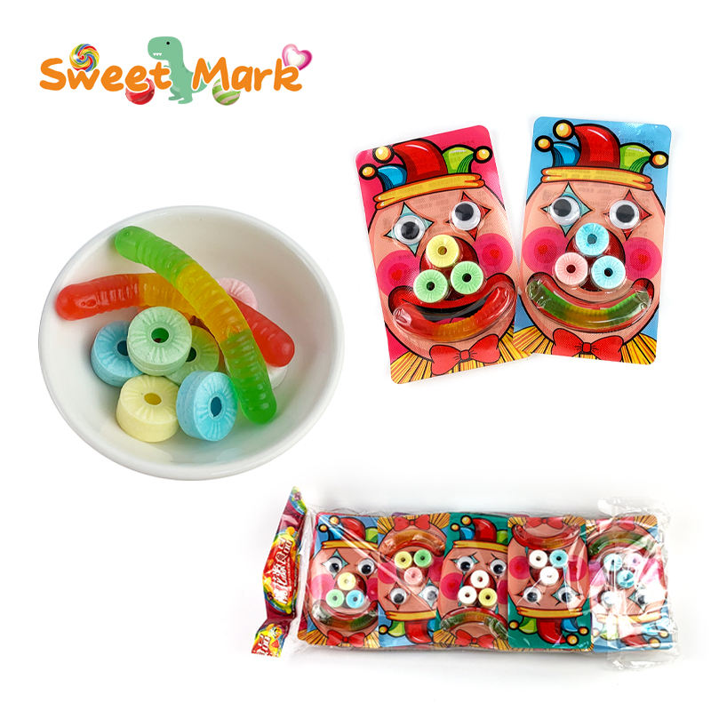 Product name:Cartoon clown cards and whistles press candy and gummy worms