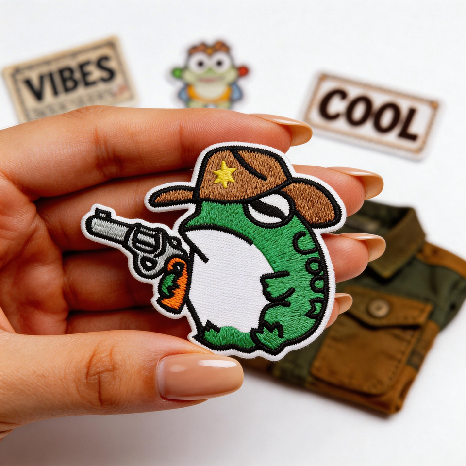Parche Bordado Termoadhesivo o para Coser de Rana Vaquera de Dibujos Animados con Pistola para Ropa, Bolsos, Decoración DIY, Diseño de Bordado