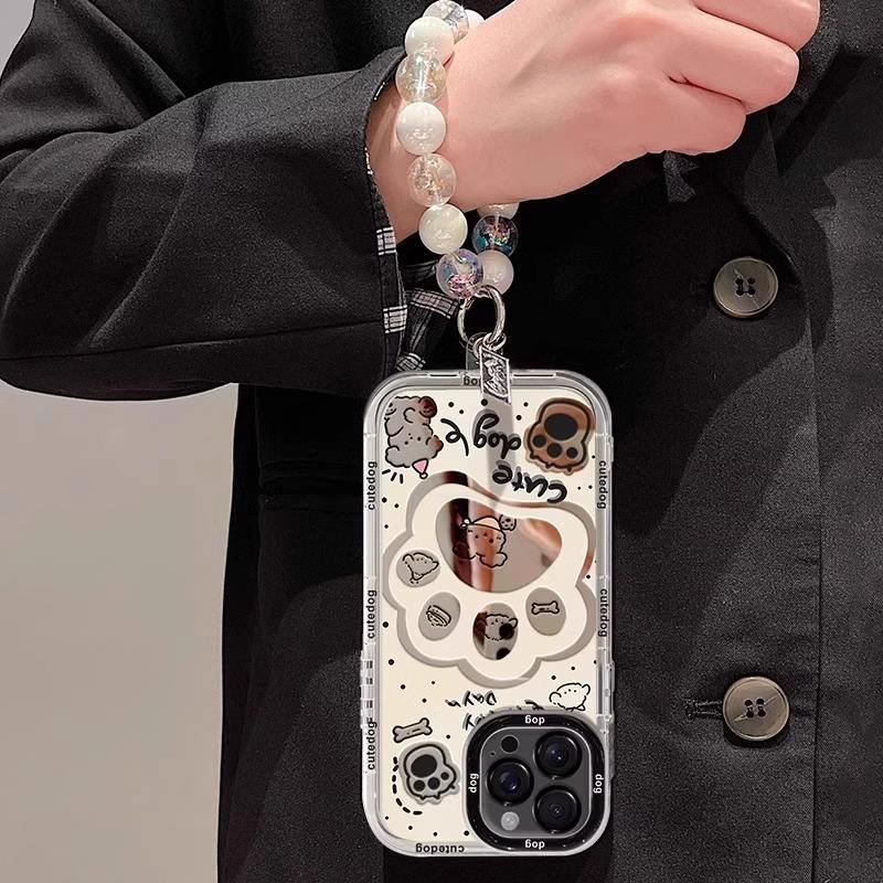 Espejo crema de dibujos animados para iPhone 16 15 14 para Huawei P 60 para Xiaomi 13 Pro Cute Dog Paw Soft TPU Phone Protection Back Covers