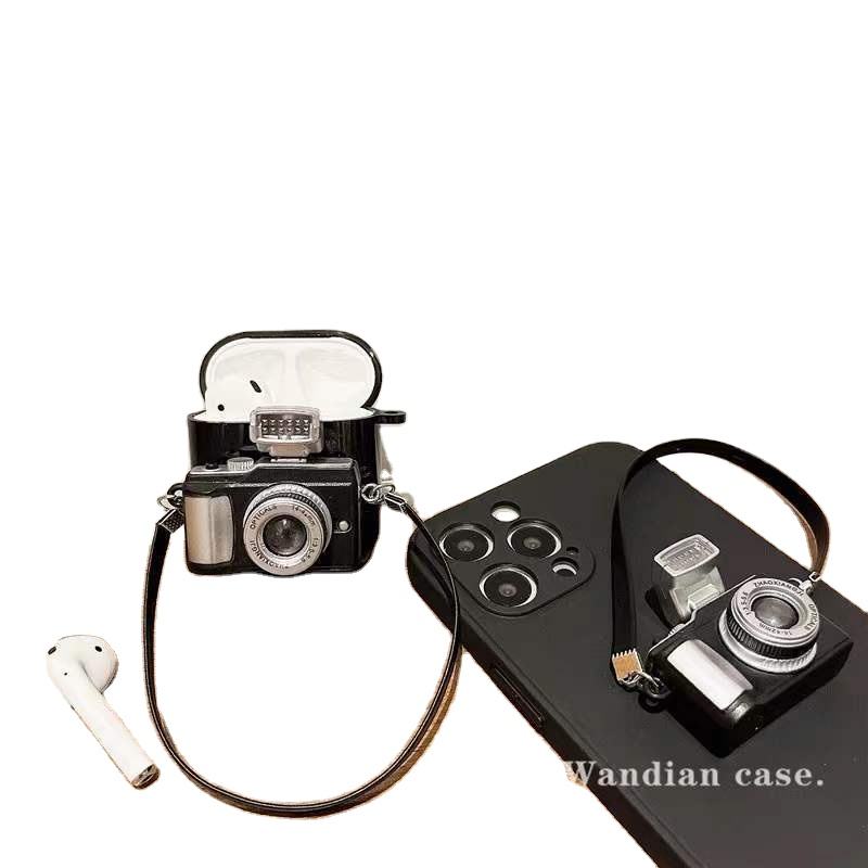 Funda Protectora Suave con Forma de Cámara de Dibujos Animados para AirPods 1/2/3 Pro, Cubierta para Auriculares Inalámbricos Bluetooth