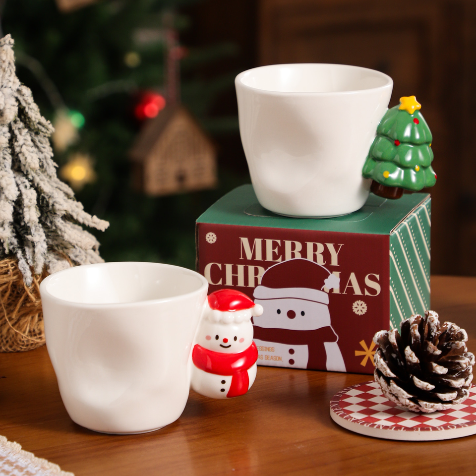 Taza de Cerámica con Diseño de Muñeco de Nieve y Árbol de Navidad, con Bandeja, Regalo de Alta Calidad para Niñas