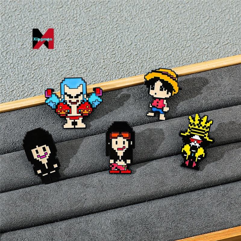 Broche de Aleación de Metal con Diseño de Pixel Art de Dibujos Animados, Insignia de Una Pieza